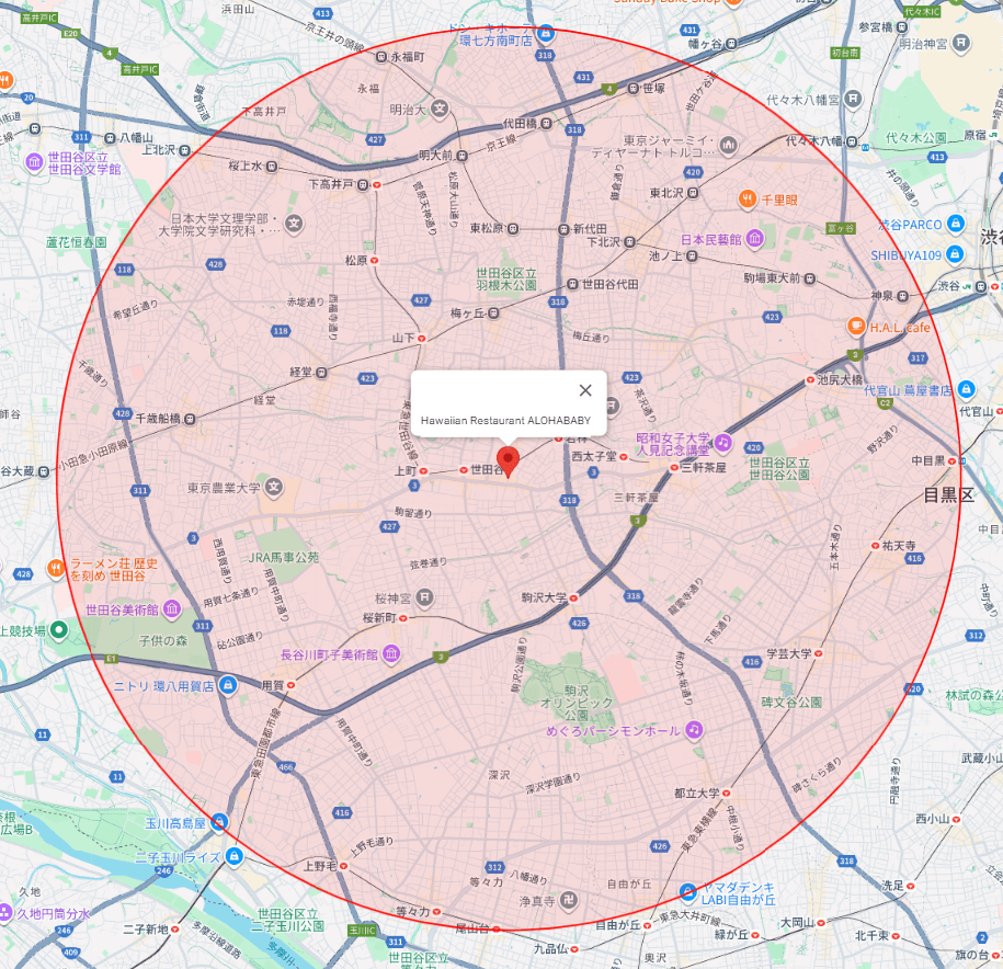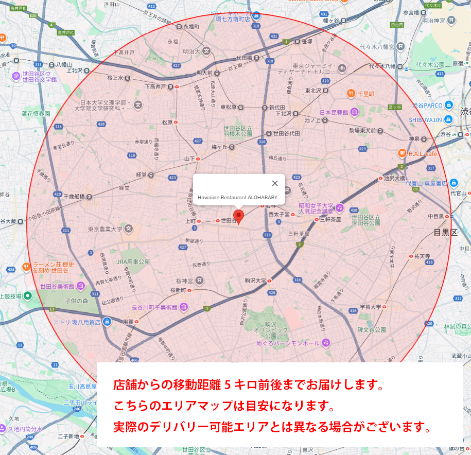店舗からの距離によって配達料が計算されます。(配達エリアの目安は別欄をご確認ください)